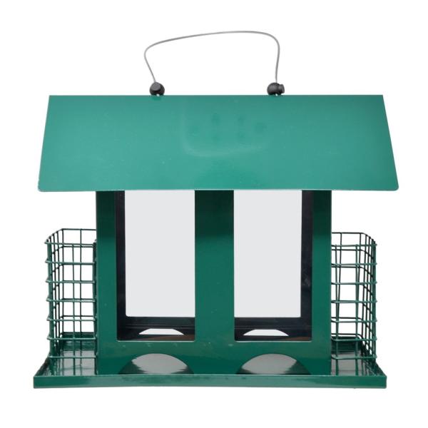 Two hoppers allow you to offer two different seed types so you can attract more birds! Also holds two standard suet cakes.